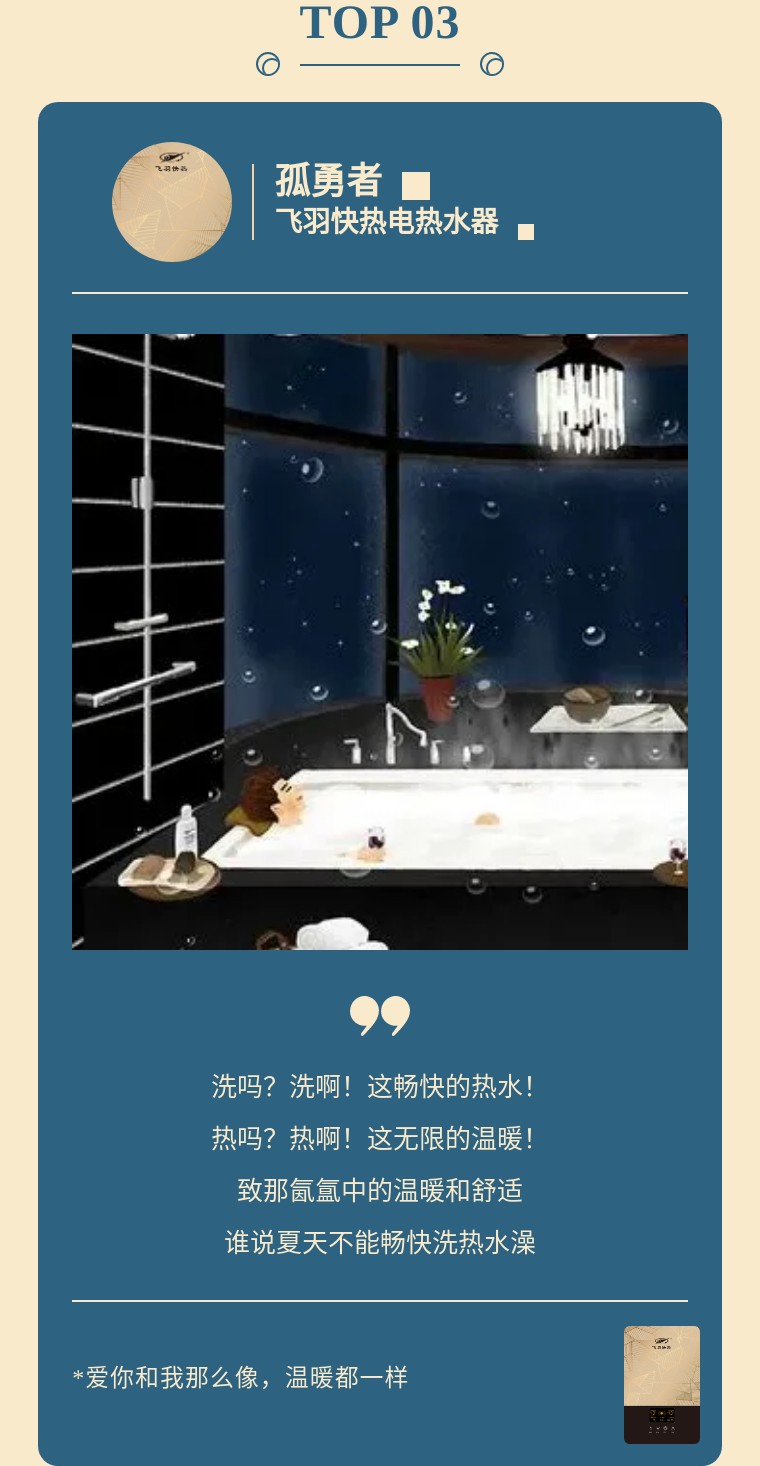 趁時間還早,月色剛好,趕緊用飛羽快熱暢快洗個澡吧!隨心所浴,自由暢快。