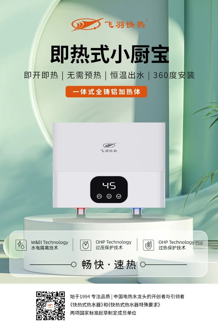 飛羽快熱即熱式廚寶,采用一體式全鑄鋁加熱體,加熱穩定熱效高,以即開即熱的溫熱水花,完美迎合春日鮮美的效率要求。