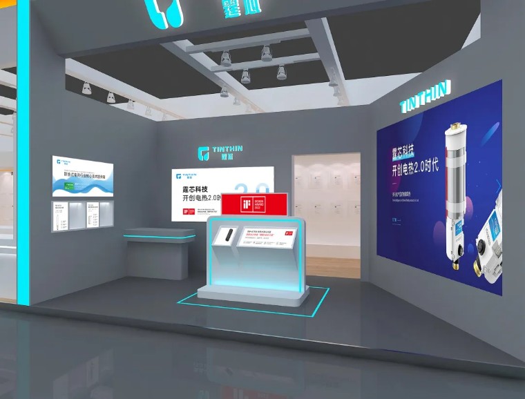 在飛羽快熱展區右側,特別設置了集團旗下核心技術提供商——霆芯科技,它以充滿科技感的藍色為主題色,以凝結飛羽快熱29年核心研發技術的模塊化加熱模組——霆芯?高性能安全內膽為主要產品,賦能即熱行業,開創電熱2.0時代。