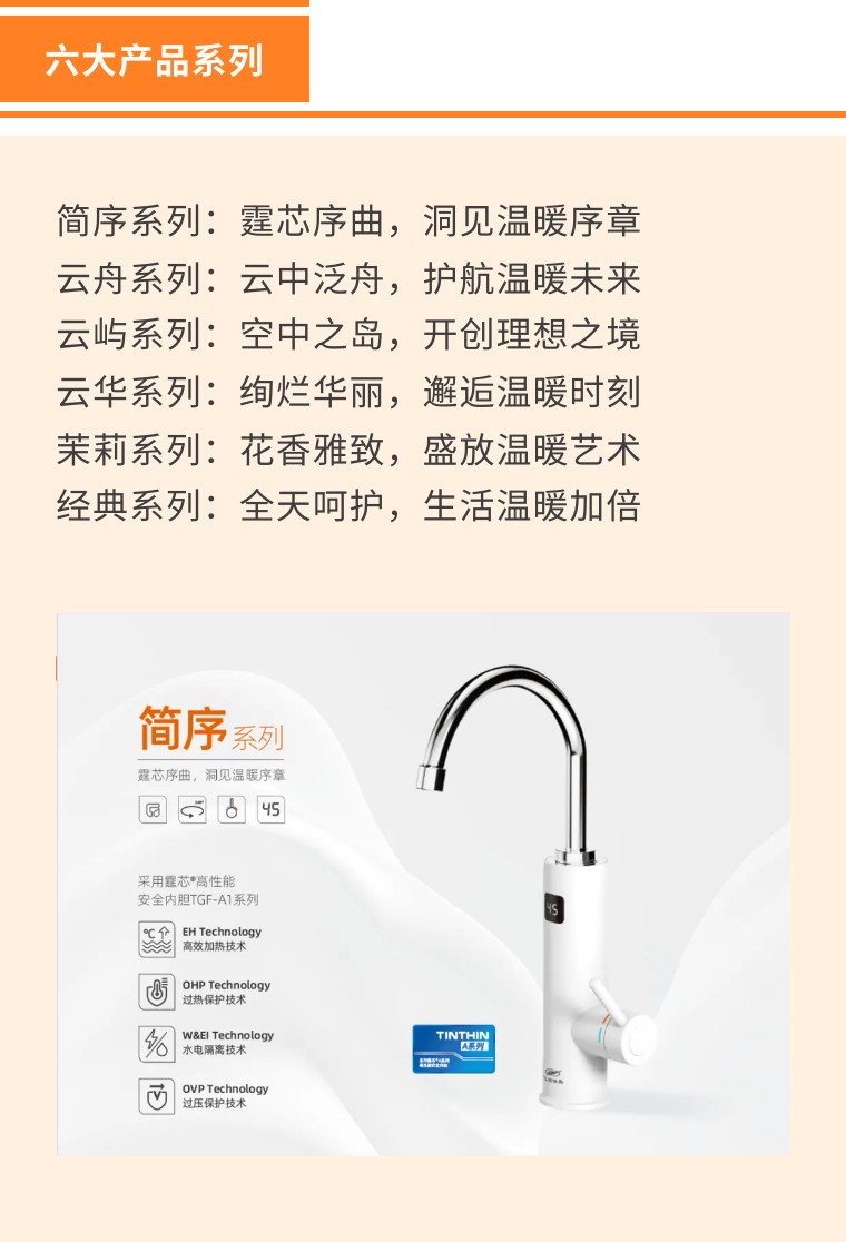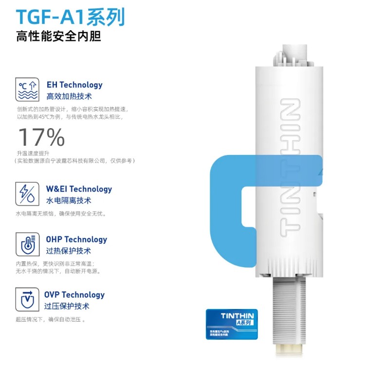 作為一款標準化的加熱模組,霆芯?高性能安全內膽以高效加熱技術為核心,以多項安全技術為保障,成功應用于電熱水龍頭、小廚寶、淋浴器、以及智能加熱類等產品領域,解決中小型即熱式企業的技術難點。