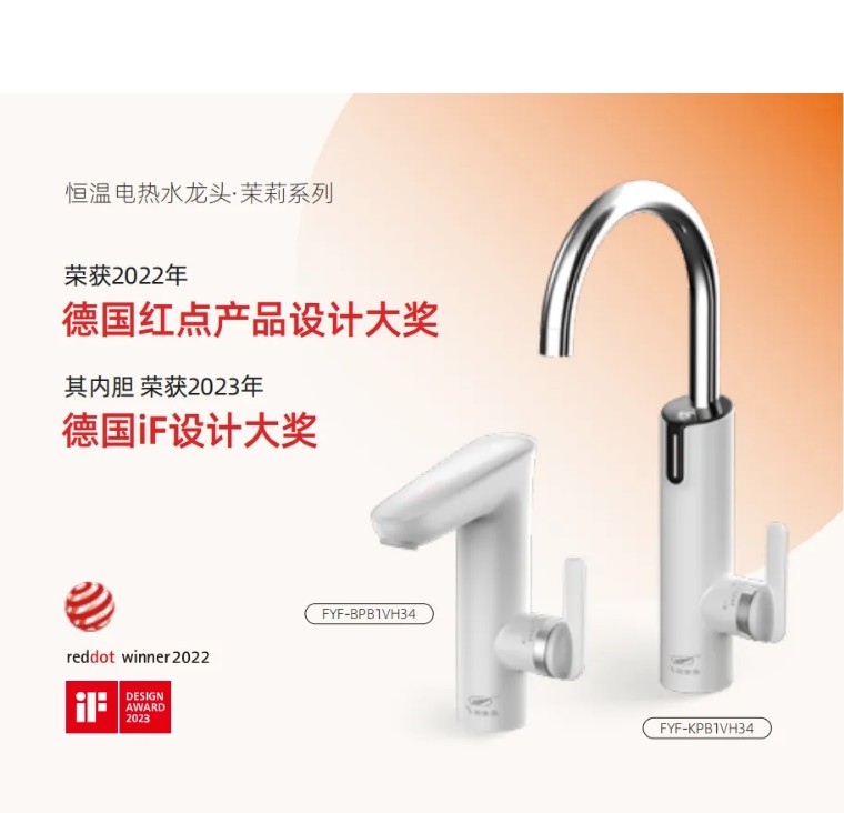 其中,恒溫式電熱水龍頭·茉莉和其內部搭載的霆芯?高性能安全恒溫內膽TGF-A7分別獲得了2022年度德國紅點獎和2023年度德國iF獎等國際權威設計大獎。