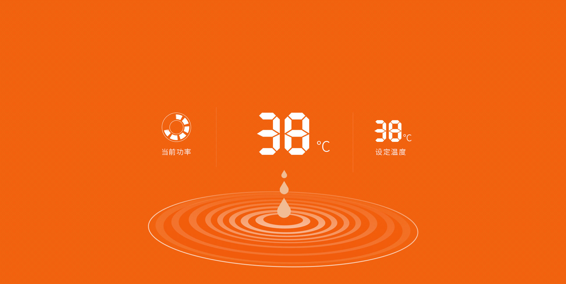 當前功率、設定溫度及出水溫度等直觀顯示